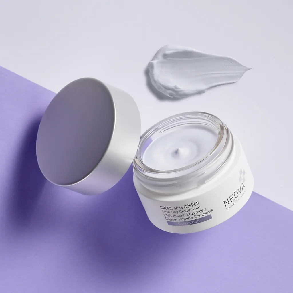 Kem Dưỡng Ban Ngày Phục Hồi Da NEOVA Crème de la Copper giàu độ ẩm ứng dụng công nghệ độc quyền từ Neova DNA Co-Factor (DNA Repair + Phức hợp Đồng Peptide®) đóng vai trò quan trọng trong việc sửa chữa DNA, phục hồi mô và tăng cường sản sinh collagen cho da.