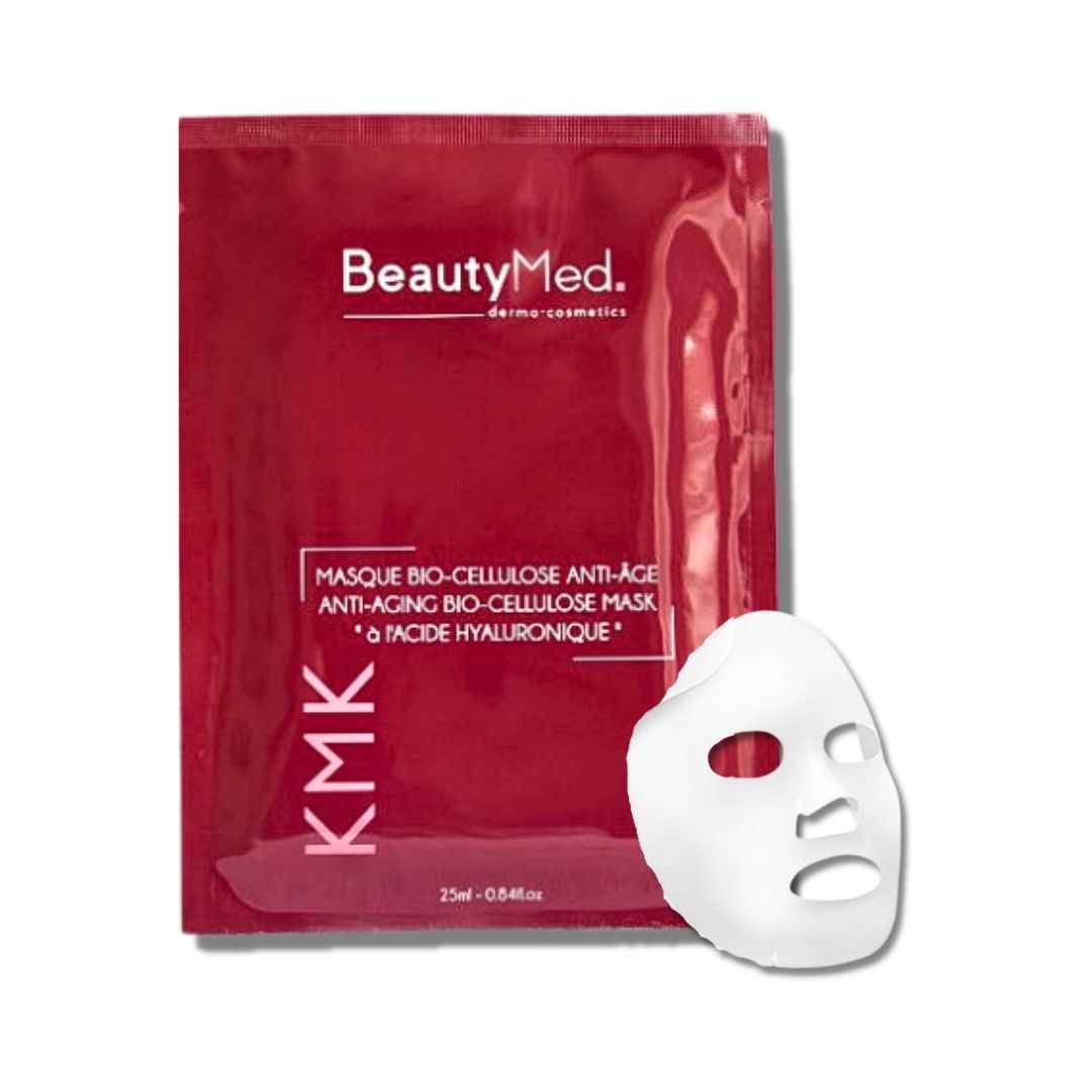 Mặt Nạ Sinh Học Chống Lão Hóa Da BeautyMed KMK Anti-Aging Bio-cellulose Mask với sự kết hợp của Hyaluronic Acid, cùng dẫn xuất Tripeptide KMK độc quyền giúp làm đầy nếp nhăn, căng mịn và trẻ hóa làn da.