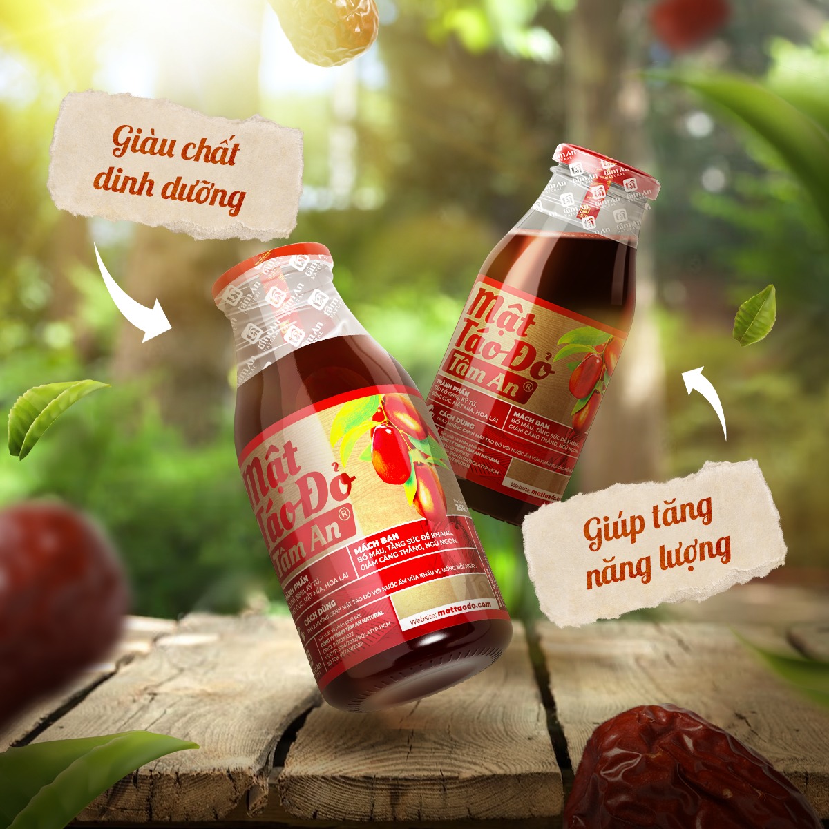 Mật Táo Đỏ Tâm An là một sản phẩm được làm từ táo đỏ nhập khẩu Hàn Quốc, quy trình kỳ công ủ nấu liên tục 36 tiếng trên lửa nhỏ, để tạo nên sản phẩm Mật Táo Đỏ có vị ngon đậm đà và giữ nguyên giá trị dinh dưỡng cao cho người sử dụng. Mật Táo Đỏ có nhiều công dụng tuyệt vời cho sức khỏe và làn da như: