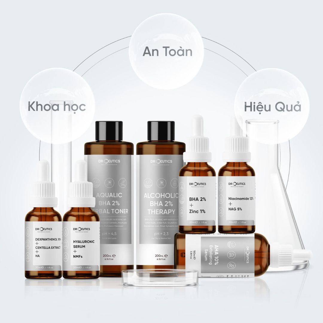 Một trong những điểm khác biệt quan trọng của DrCeutics là phương pháp khoa học tiếp cận làm đẹp. Mỗi sản phẩm được công thức hoàn toàn bằng cách sử dụng các thành phần đã được chứng minh lâm sàng, đã được kiểm chứng và có hiệu quả. DrCeutics không chỉ đơn thuần là những lời hứa, mà là sự kết hợp giữa khoa học và hiệu quả thực tế trên da của bạn.