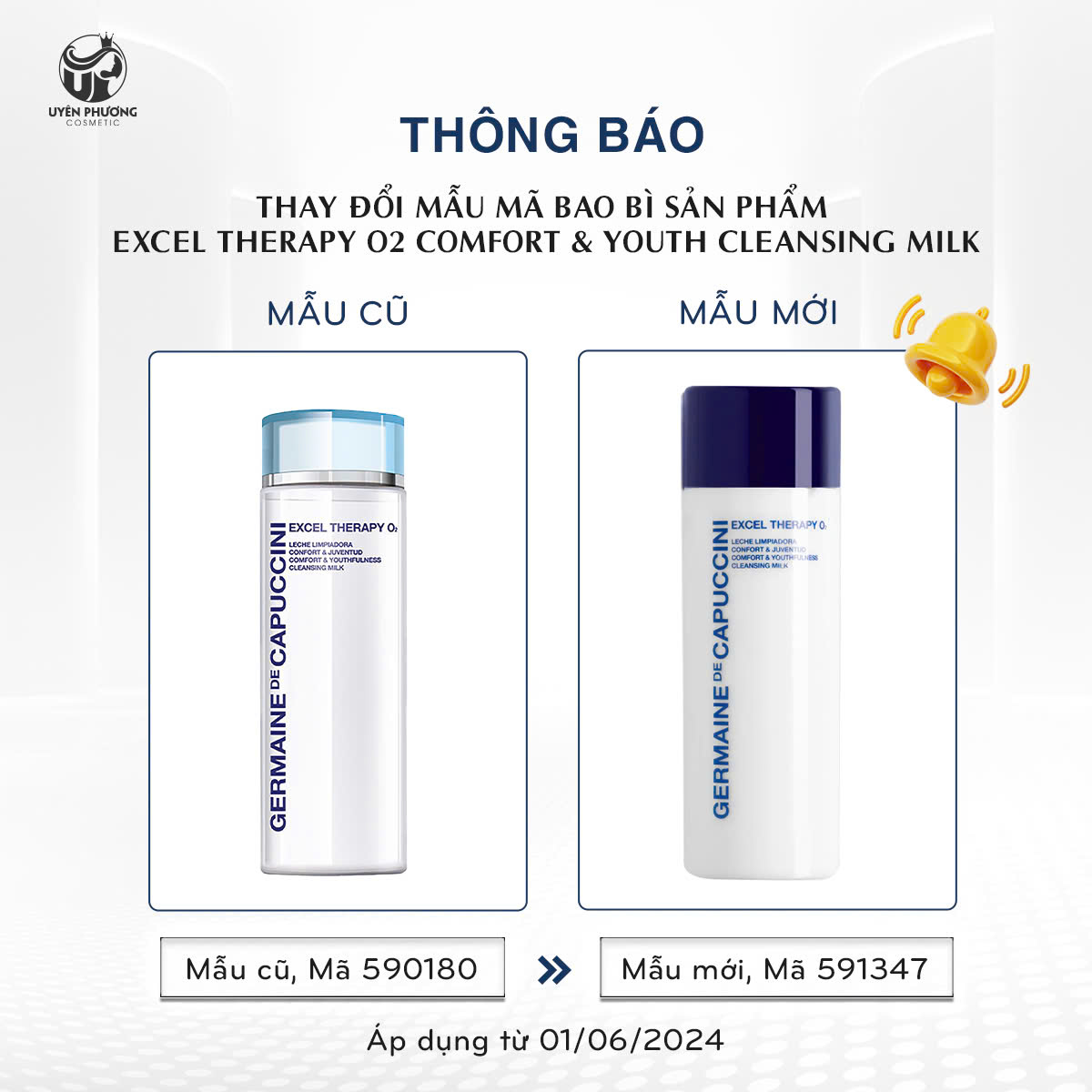 Sữa Rửa Mặt Oxy Thanh Lọc Da Germaine ET O2 Comfort & Youthfulness Cleansing Milk - giúp loại bỏ tạp chất, bụi bẩn, thanh lọc da và củng cố lớp màng bảo vệ chống lại sự tấn công của môi trường như khói bụi, ô nhiễm, độc tố...