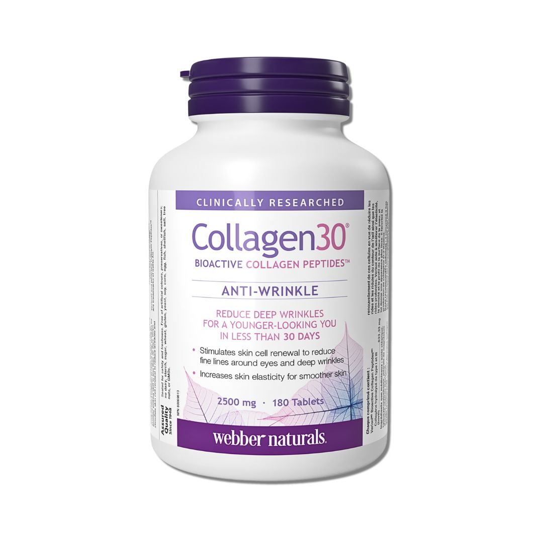 Webber Naturals Collagen30 Anti-Wrinkle 2500mg là giải pháp chăm sóc da toàn diện dành cho phụ nữ từ 25 tuổi trở lên - độ tuổi mà quá trình sản xuất collagen bắt đầu chậm lại. Sản phẩm chứa Verisol® Bioactive Collagen Peptides™ – loại collagen peptide hoạt tính sinh học có khả năng kích thích sản sinh collagen và elastin mới, giúp cải thiện nếp nhăn, tăng độ đàn hồi và độ mịn màng của làn da chỉ trong vòng 4 tuần sử dụng.