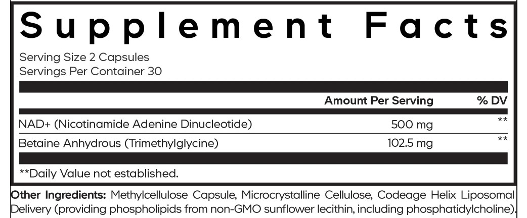 Codeage Helix Liposomal Delivery: Công nghệ liposomal độc quyền giúp tăng khả năng hấp thụ, tối ưu hoá hiệu quả sử dụng của NAD+ và Betaine.