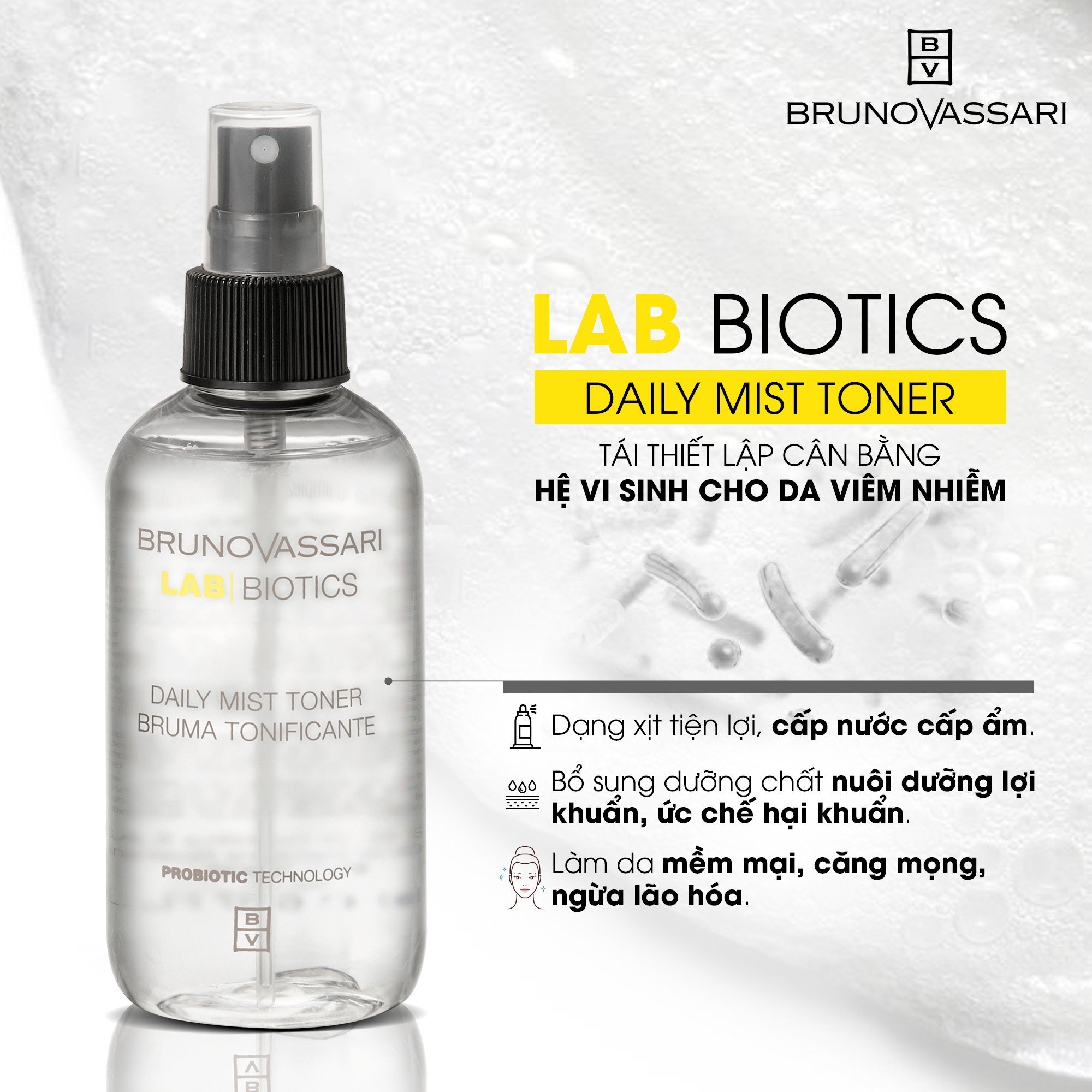 Xịt Dưỡng Cân Bằng Hệ Vi Sinh Bruno Vassari Lab Biotics Daily Mist Toner là toner dạng xịt, giàu thành phần Prebiotic giúp tái lập sự cân bằng của hệ vi sinh vật có lợi và bảo vệ da khỏi các tác nhân có hại bên ngoài, tăng cường hàng rào bảo vệ và duy trì mức độ ẩm tối ưu.